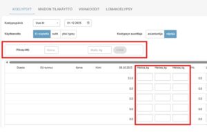 Kuva 3. Maitomäärien syöttö taulukkoon