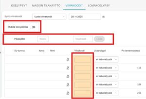 Tilakäyttö, viivakoodit ja lomakoelypsy