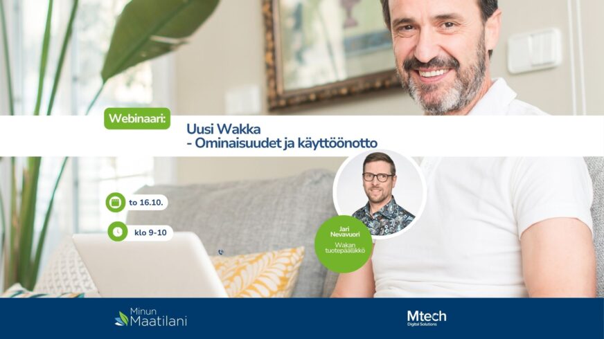 Webinaarissa Wakan tuotepäällikkö Jari Nevavuori esittelee uuden ohjelmiston keskeiset toiminnot ja näyttää, kuinka helposti Wakka otetaan käyttöön omalla maatilalla.
