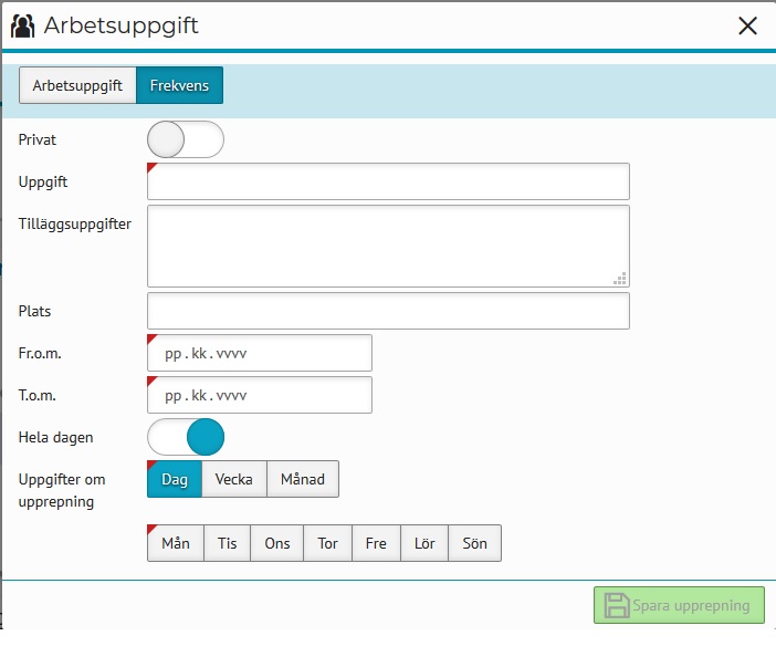 Egen arbetsuppgift för vårdåtgärder i kalendern